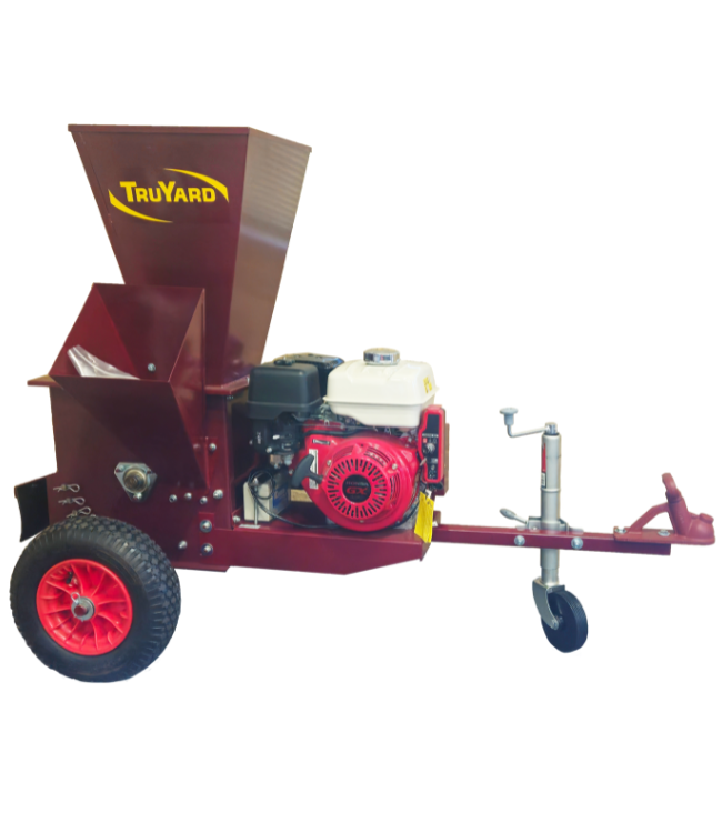 The Truyard CM90270K is a large capacity semi-commercial Mulcher/Chipper. Powered by a Honda GX270 Keystart OHV Petrol Engine. The large flywheel with 28 reversible blades means it is fantastic on all types of materials. The Truyard CM90270K Mulcher/Chipper perfect for large amounts of leaf matter. The chipper has two high tensile cutting blades which will mulch most branches up to 90mm. The Truyard CM90270K Mulcher Chipper is very easy to operate the final photo shows the optional extra towing attachment so you can tow it around your property.